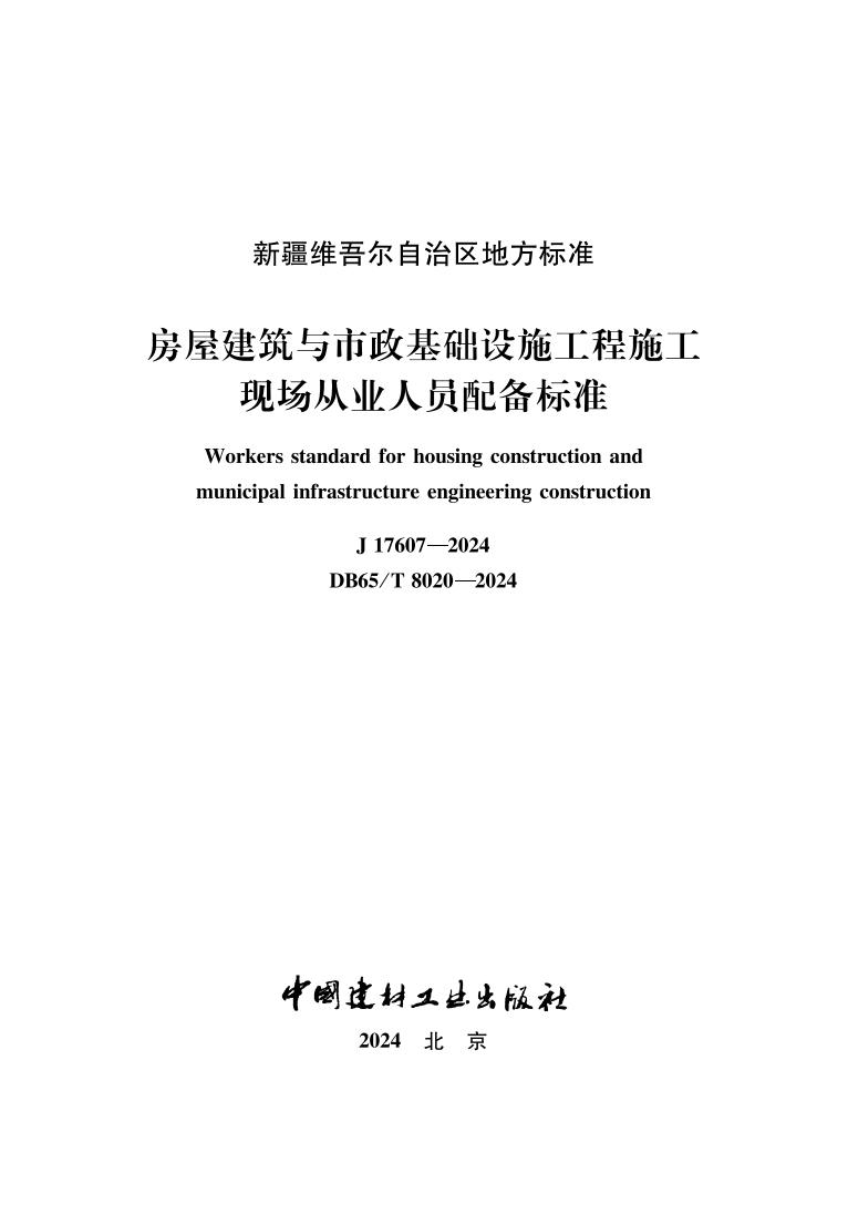 • 新疆维吾尔自治区房屋建筑与市政基础设施工程施工现场从业人员配备标准